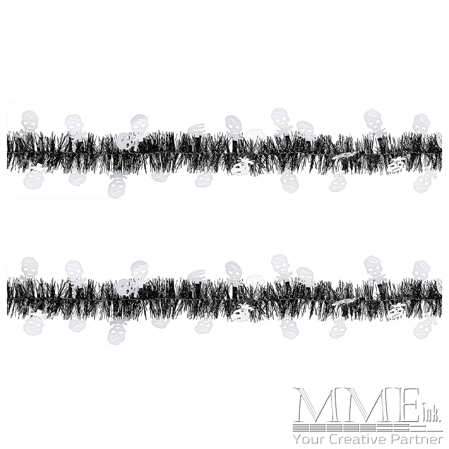 Black Tinsel Garland with Skull Cutouts