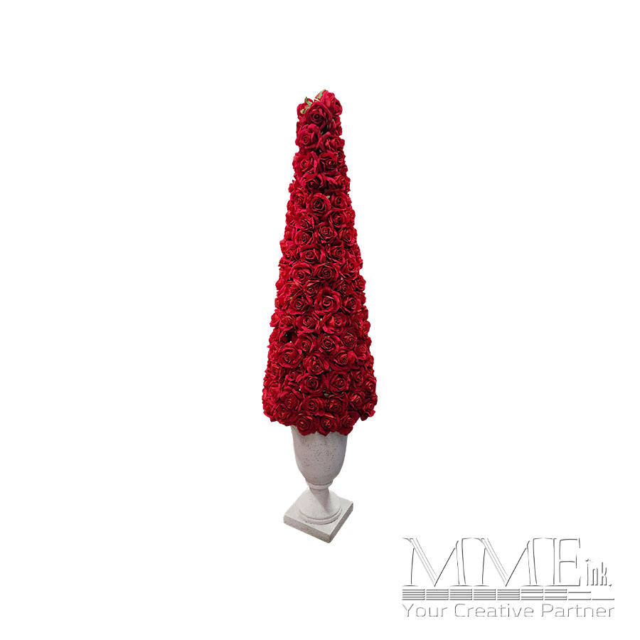 Red Rose Tree in White Planter